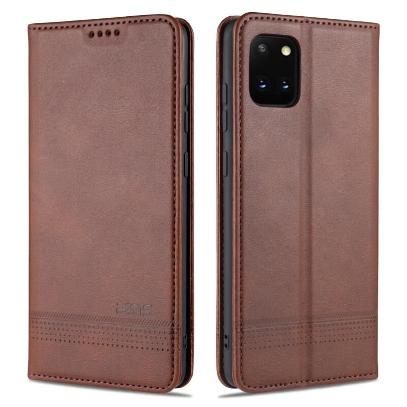 Θήκη Samsung Galaxy Note 10 Lite AZNS Μαγνητική Δερμάτινη Οριζόντια με Υφή Μοσχαριού, με Θήκες Καρτών & Στήριξη & Πορτοφόλι (Σκούρο Καφέ) (AZNS)