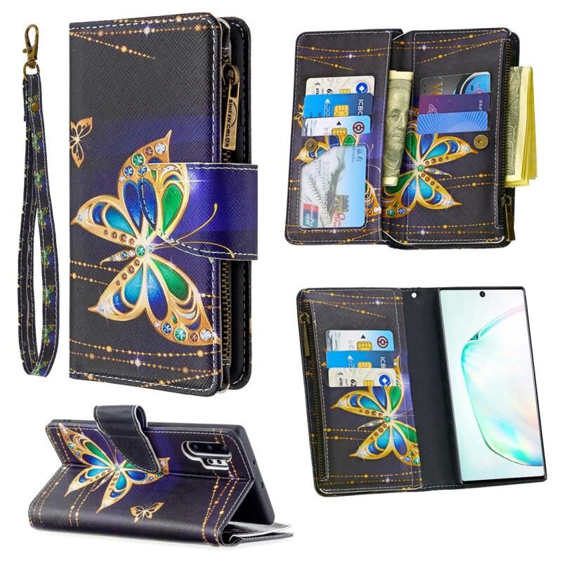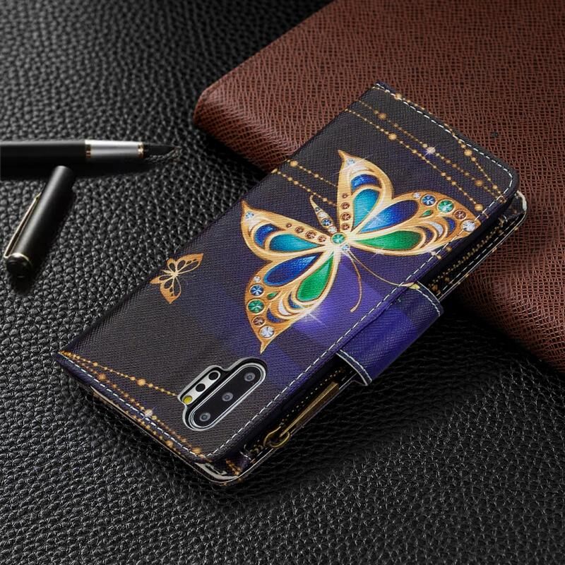 Θήκη δέρματος οριζόντιας αναδίπλωσης με φερμουάρ και σχέδιο πολύχρωμης ζωγραφικής για Samsung Galaxy Note 10 Plus με βάση για κάρτες & θήκη πορτοφολιού (Κόκκινο)
