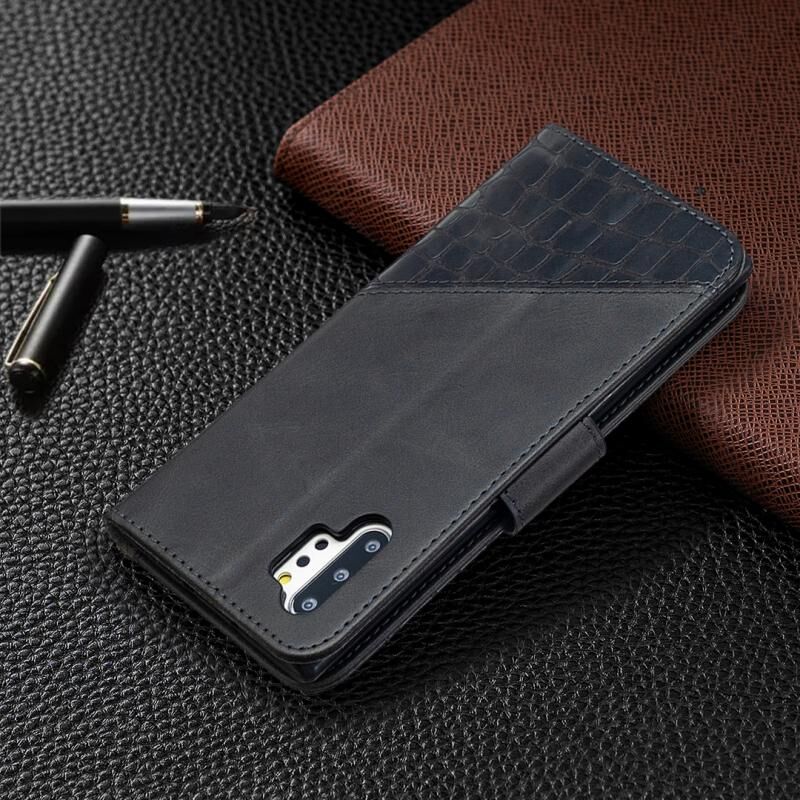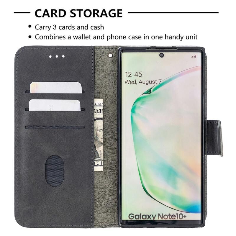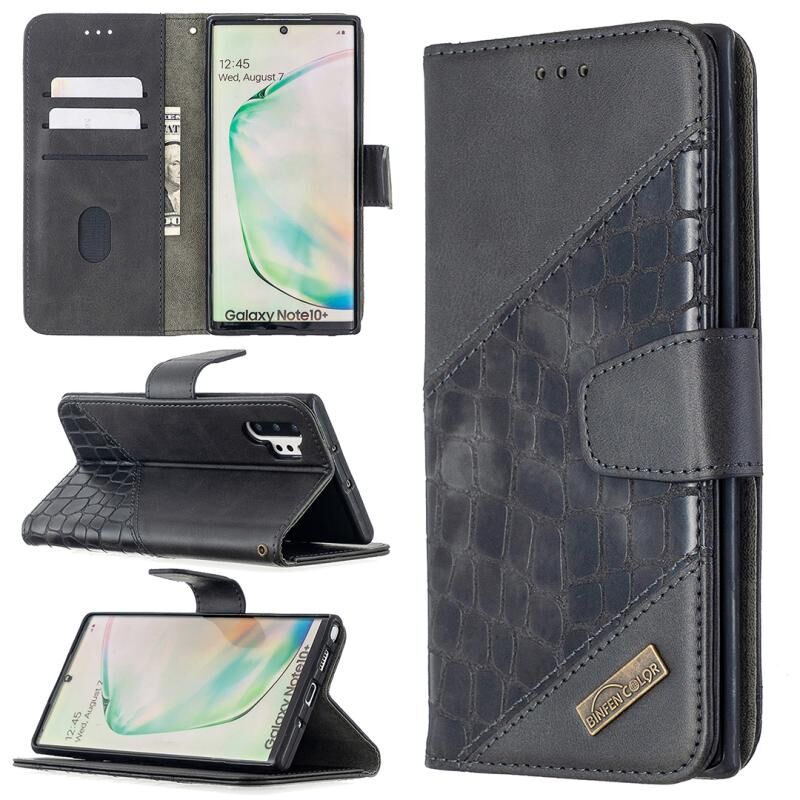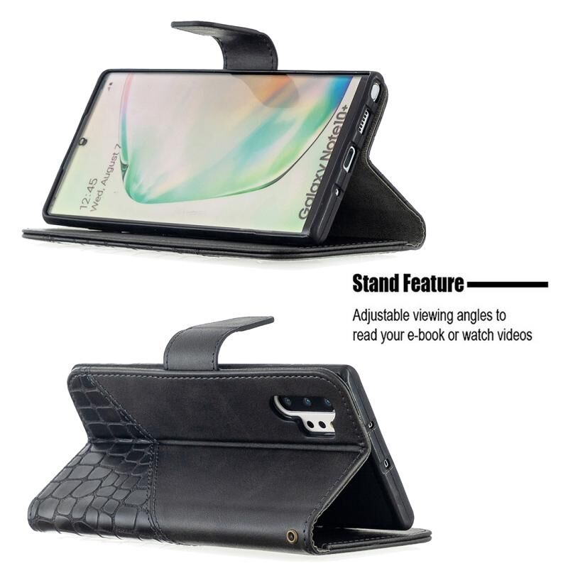 Θήκη Samsung Galaxy Note 10 Plus, Οριζόντια, Δερμάτινη PU με Υφή Κροκόδειλου, σε Αντίστοιχο Χρώμα, με Πορτοφόλι, Θήκη & Θήκες Καρτών (Μαύρο)