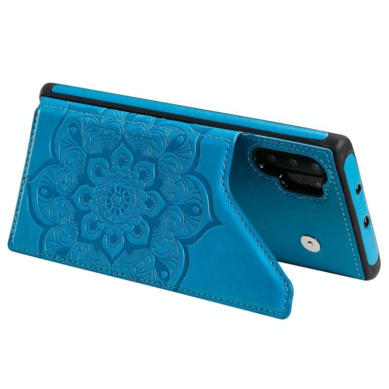 Για Samsung Galaxy Note 10 Pro Λουλούδι ανάγλυφο μοτίβο Shockproof προστατευτική θήκη με θήκη & υποδοχές για κάρτες & πλαίσιο φωτογραφιών (μπλε)