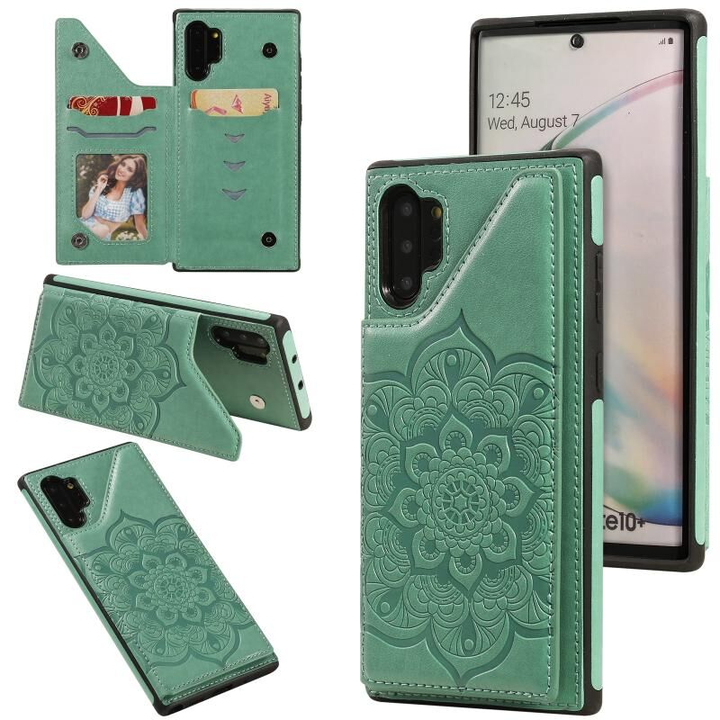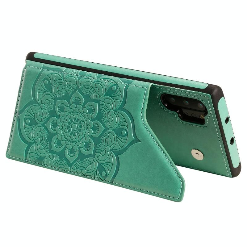 Για Samsung Galaxy Note 10 Pro Λουλούδι ανάγλυφο μοτίβο Shockproof προστατευτική θήκη με θήκη & υποδοχές για κάρτες & πλαίσιο φωτογραφιών (πράσινο)