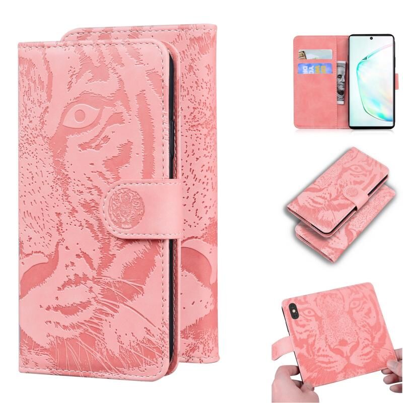Θήκη δέρματος οριζόντιας αναδίπλωσης με ανάγλυφο μοτίβο τίγρης για Samsung Galaxy Note 10 με βάση & υποδοχές καρτών & πορτοφόλι (ρόζ)