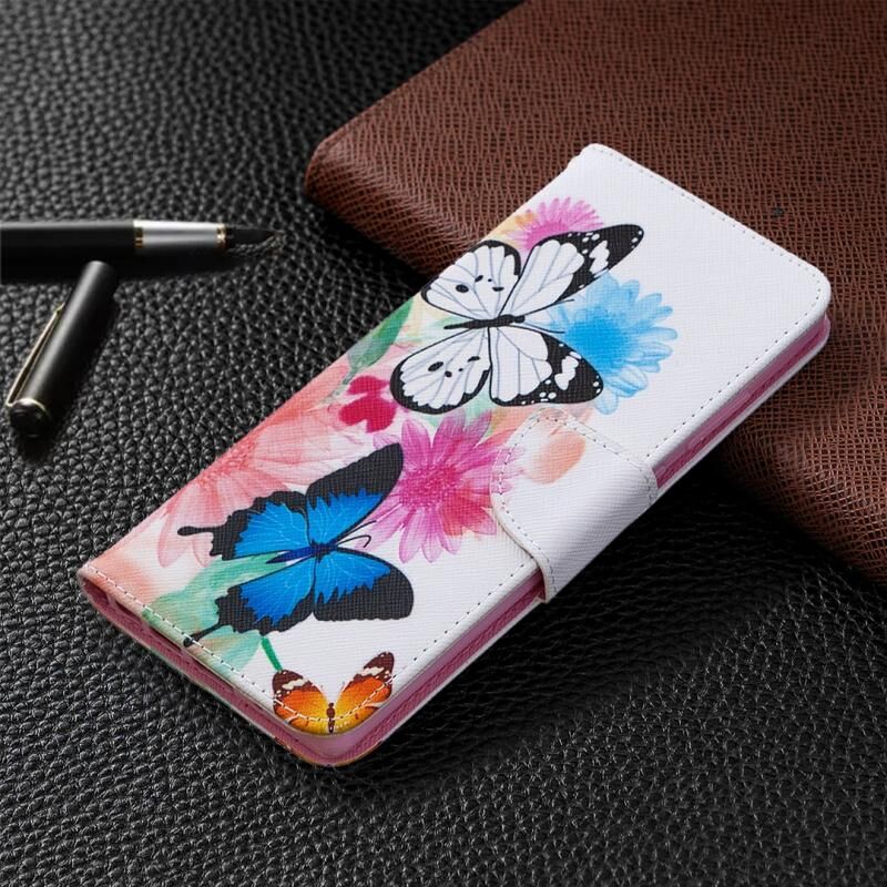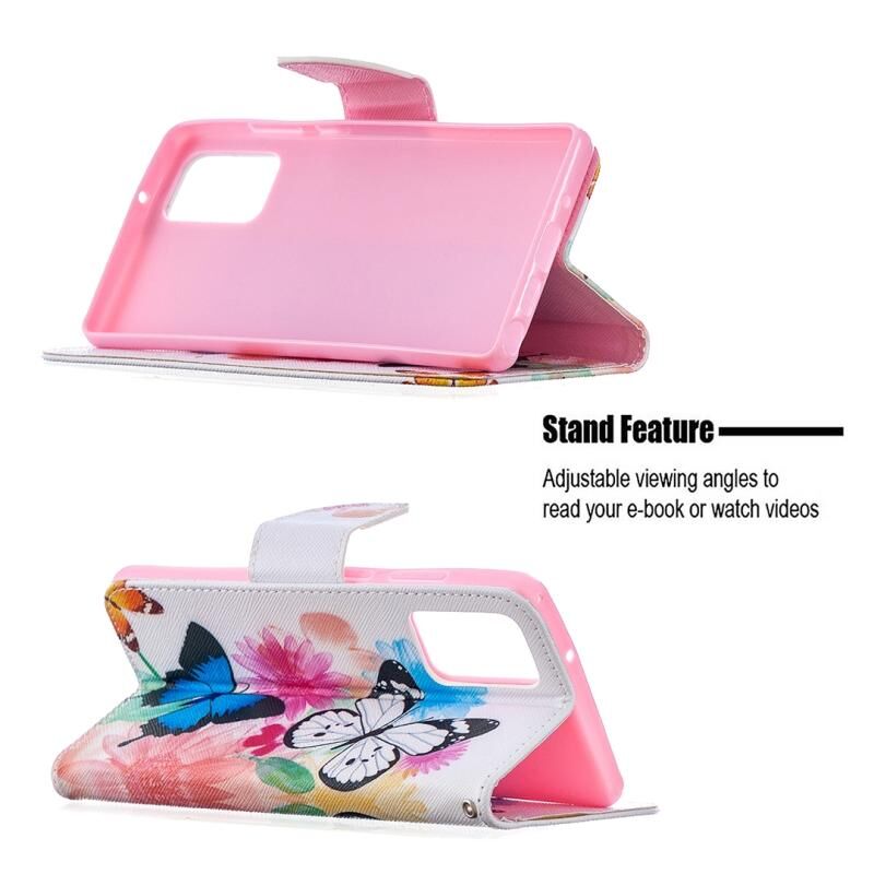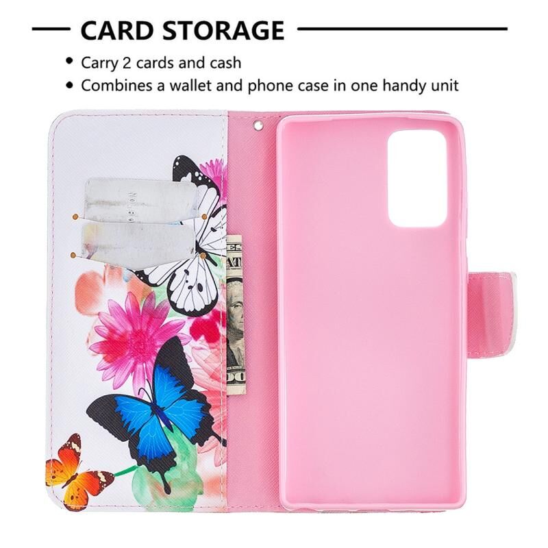 Θήκη δέρματος οριζόντιας αναδίπλωσης με σχέδιο πολύχρωμης ζωγραφικής για Samsung Galaxy Note 20 με βάση & υποδοχές καρτών & πορτοφόλι (Πεταλούδες)