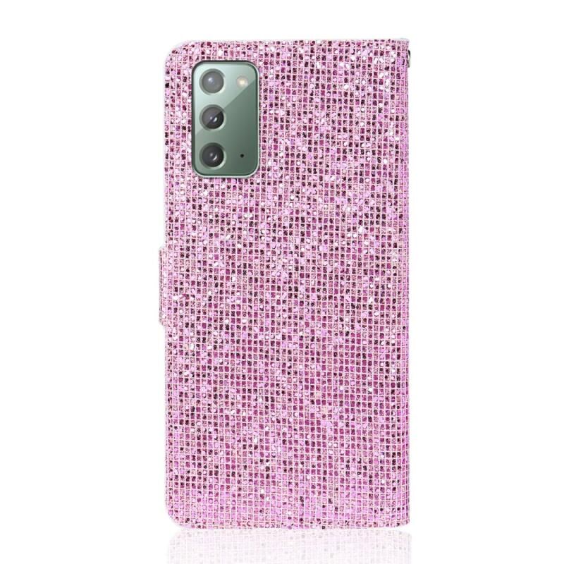 Για Samsung Galaxy Note 20 Glitter Powder Οριζόντια Flip δερμάτινη θήκη με υποδοχές για κάρτες & θήκη & κορδόνι (ροζ)