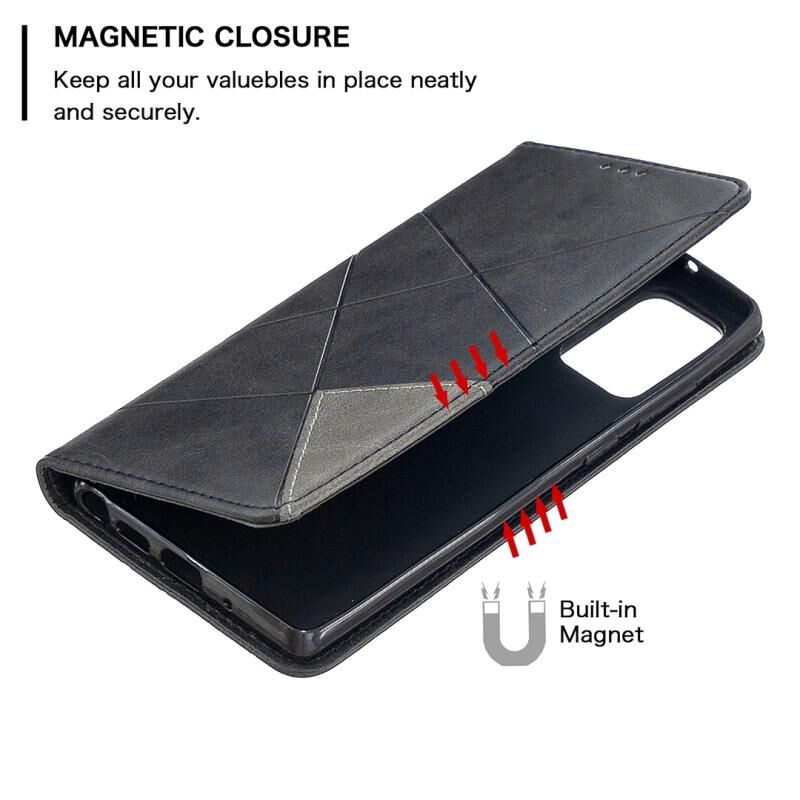 Για Samsung Galaxy Note 20 Rhombus υφή οριζόντια Flip μαγνητική δερμάτινη θήκη με θήκη & υποδοχές για κάρτες & πορτοφόλι (Μαύρο)