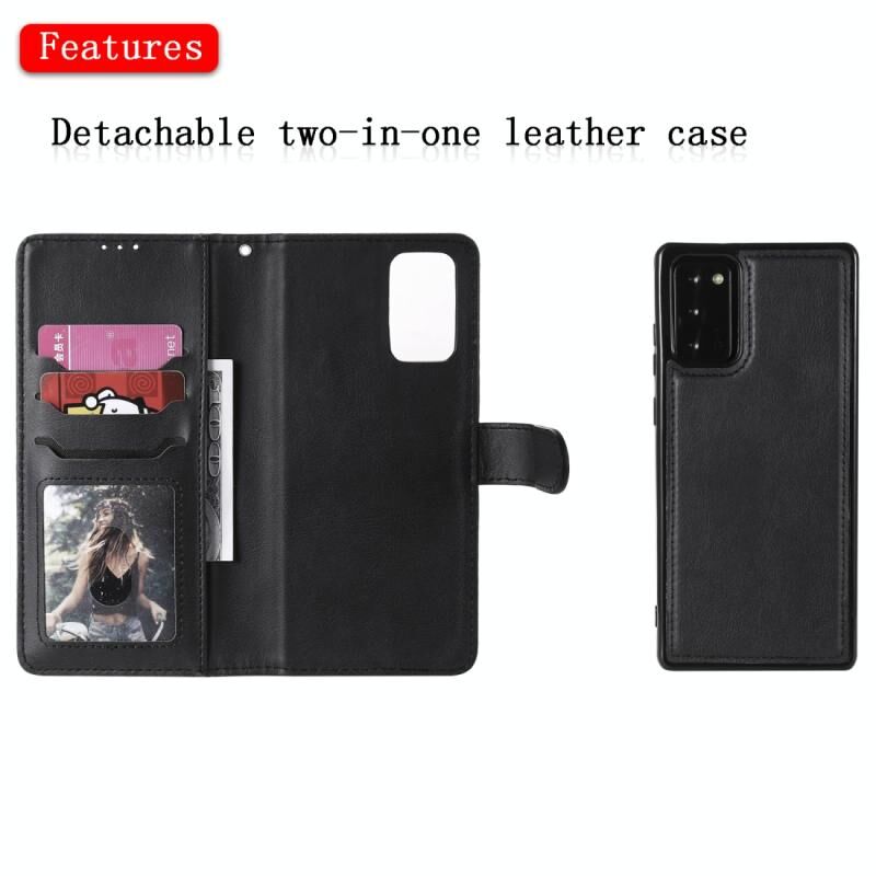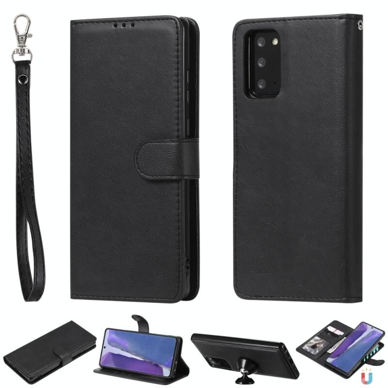 Για Samsung Galaxy Note 20 Ultra 2 σε 1 Αμιγές χρώμα Αποσπώμενη PU δερμάτινη θήκη με υποδοχές για κάρτες & μαγνητική θήκη & κορνίζα φωτογραφιών & πορτοφόλι & λουράκι (Μαύρο)