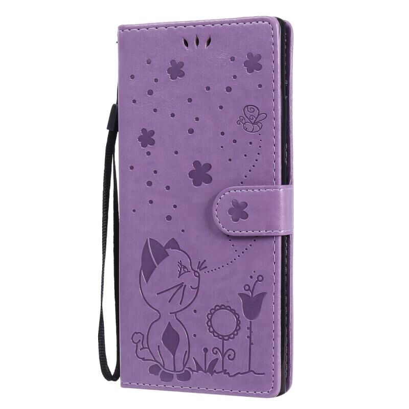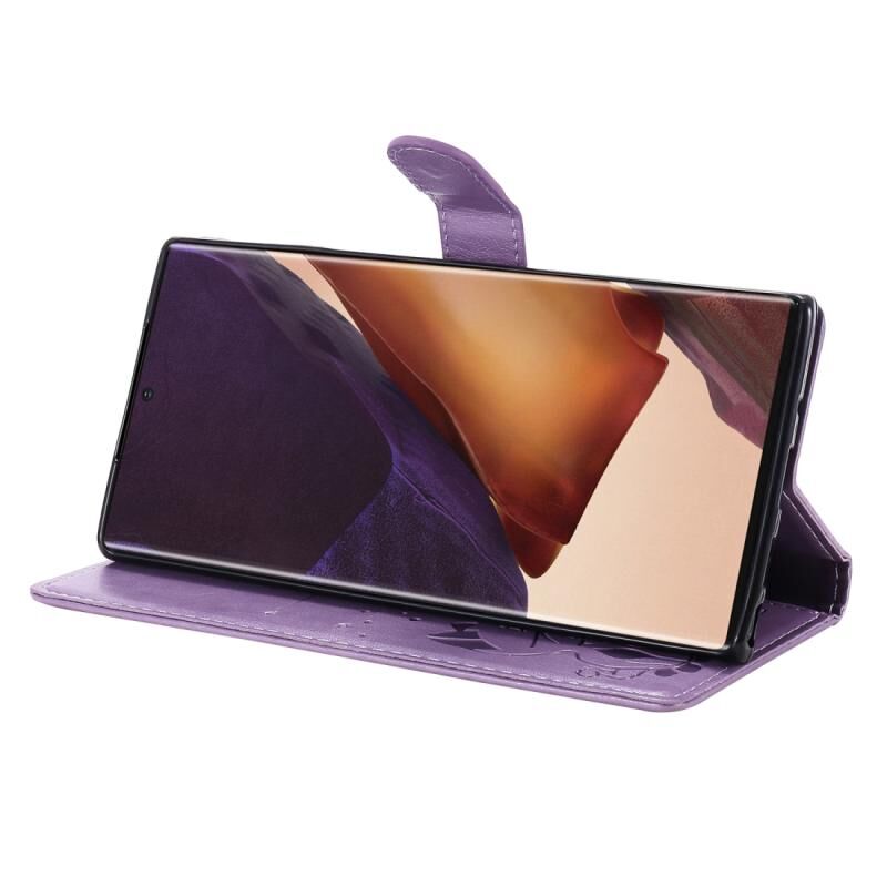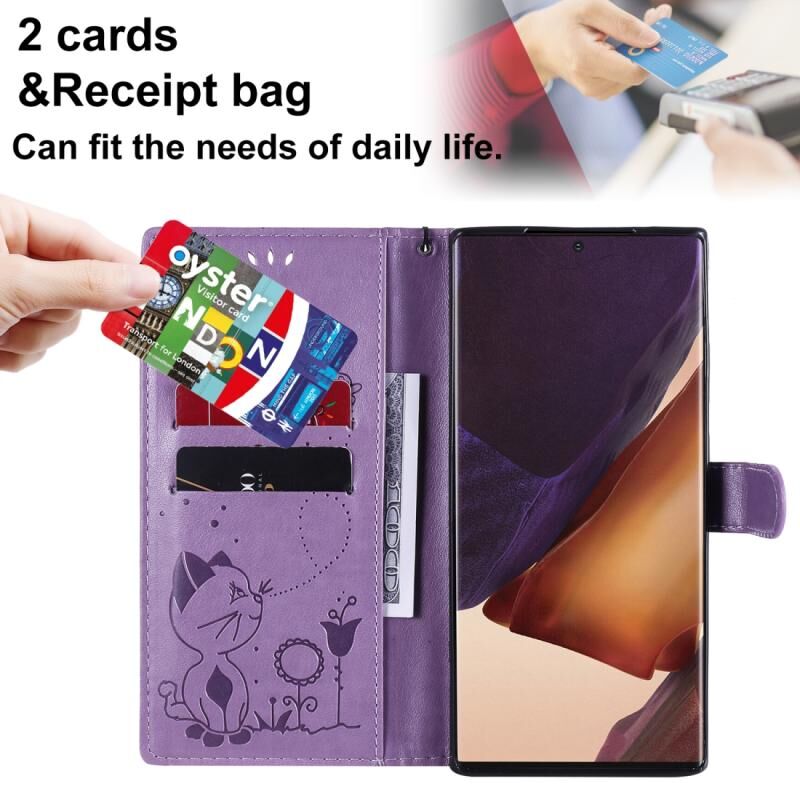 Θήκη Samsung Galaxy Note 20 Ultra, σχέδιο Embossing με Γάτα, αντικραδασμική, οριζόντια, δερμάτινη με βάση στήριξης & θήκες καρτών & πορτοφόλι (Μπλε)