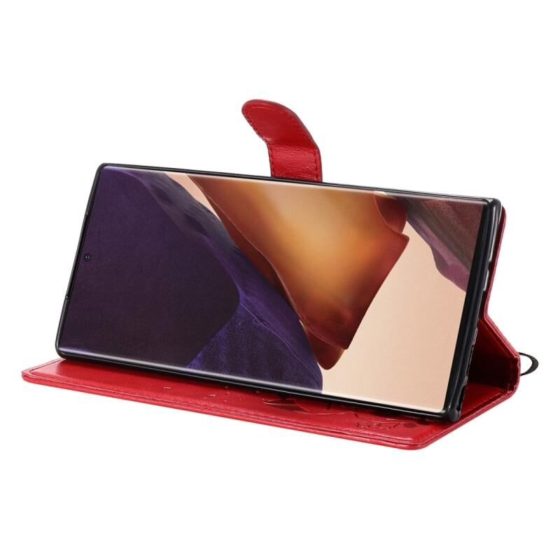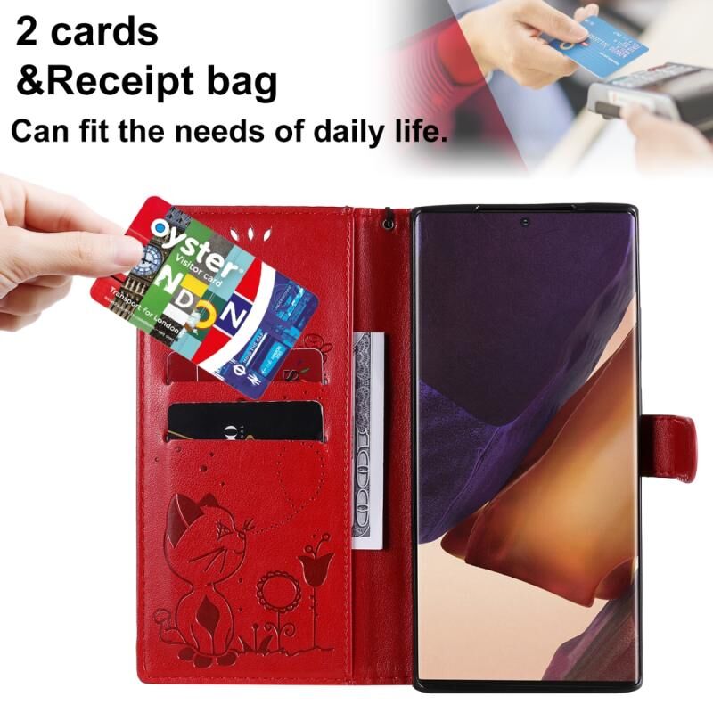 Θήκη Samsung Galaxy Note 20 Ultra, σχέδιο Embossing με Γάτα, αντικραδασμική, οριζόντια, δερμάτινη με βάση στήριξης & θήκες καρτών & πορτοφόλι (Μπλε)