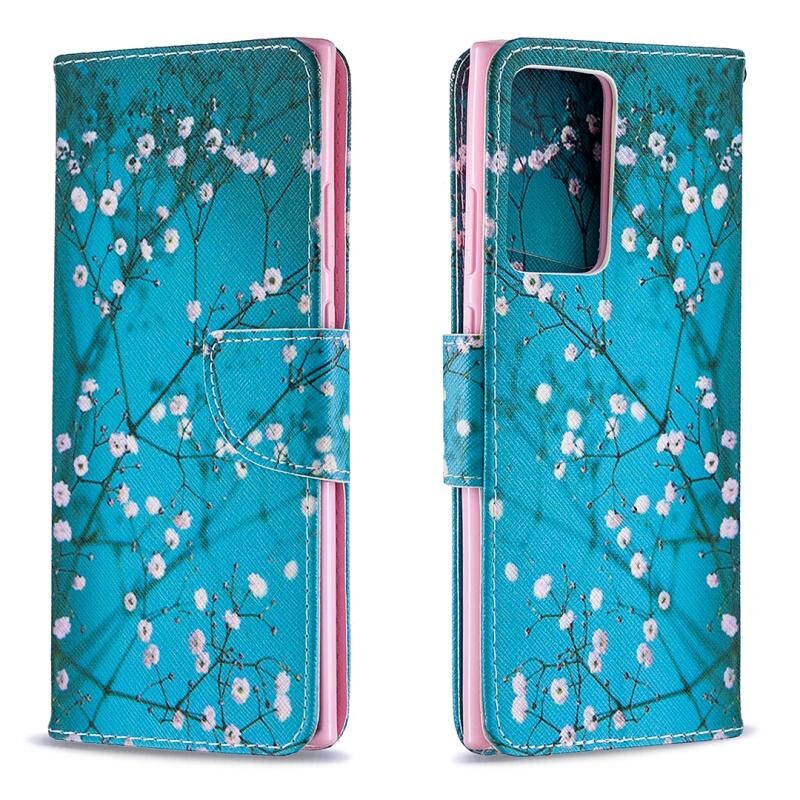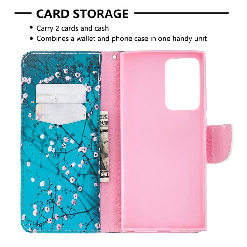 Θήκη δέρματος οριζόντιας αναδίπλωσης με σχέδιο πολύχρωμης ζωγραφικής για Samsung Galaxy Note 20 Ultra με βάση στήριξης & υποδοχές καρτών & πορτοφόλι (Λουλούδι Δαμασκηνιάς)