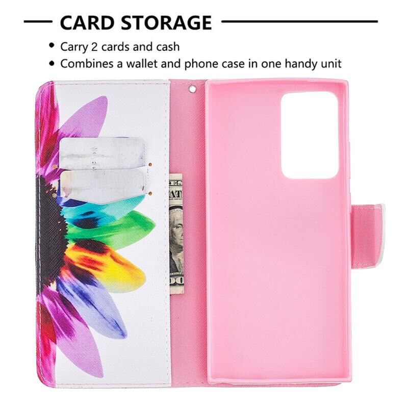 Θήκη δέρματος οριζόντιας αναδίπλωσης με σχέδιο πολύχρωμης ζωγραφικής για Samsung Galaxy Note 20 Ultra με βάση στήριξης & υποδοχές καρτών & πορτοφόλι (Ηλίανθος)