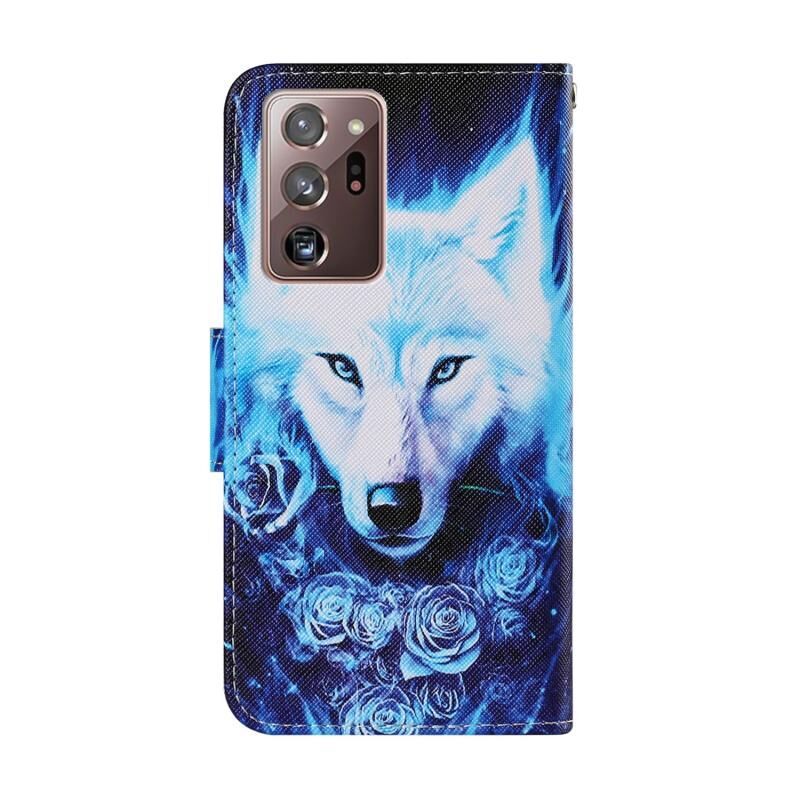 Θήκη Samsung Galaxy Note 20 Ultra με έγχρωμο σχέδιο, οριζόντια αναδιπλούμενη από δερματίνη PU με βάση στήριξης, θήκες για κάρτες, πορτοφόλι & λουρί (Rose Wolf)