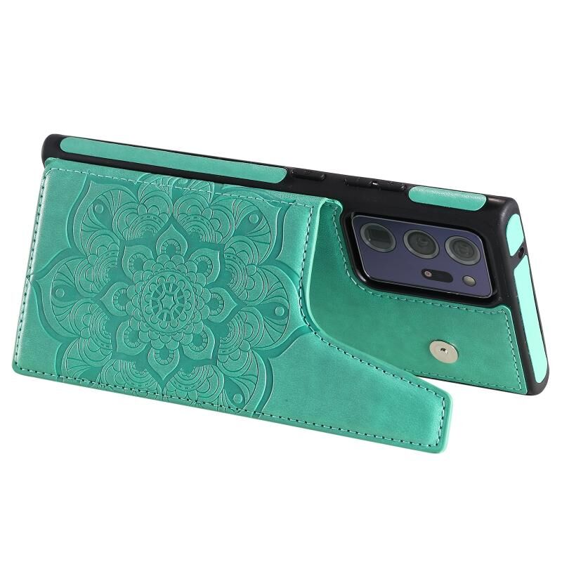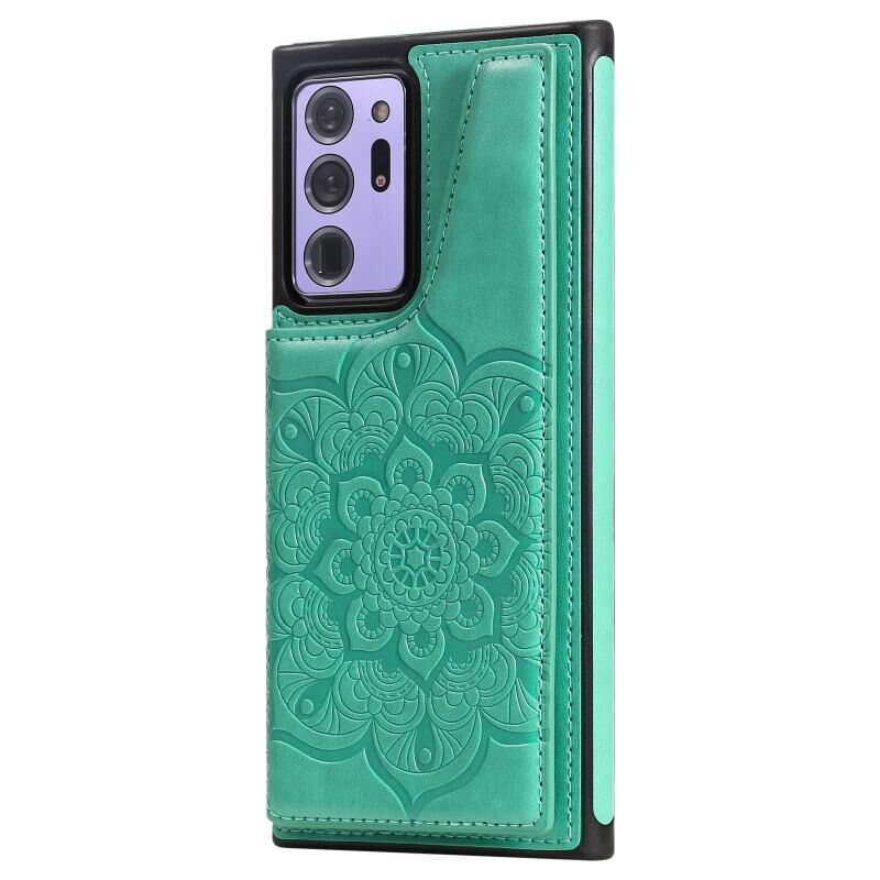 Για Samsung Galaxy Note 20 Ultra λουλούδι ανάγλυφο μοτίβο Shockproof προστατευτική θήκη με θήκη & υποδοχές για κάρτες & πλαίσιο φωτογραφιών (πράσινο)