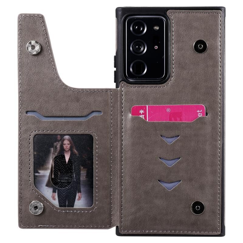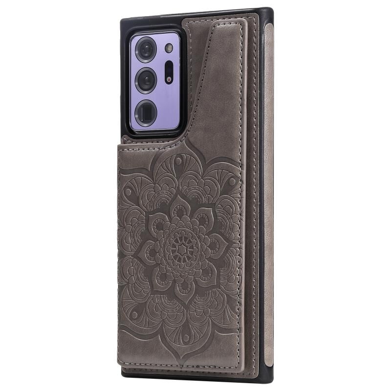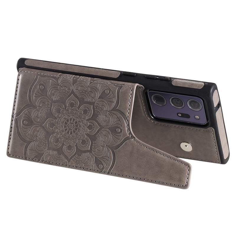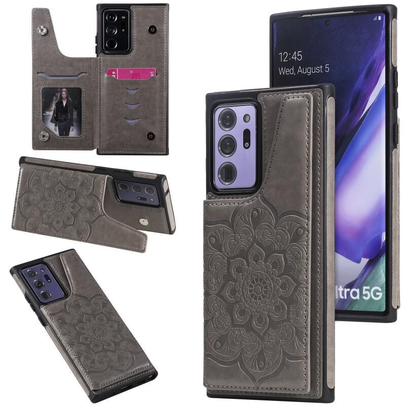 Για Samsung Galaxy Note 20 Ultra λουλούδι ανάγλυφο μοτίβο Shockproof προστατευτική θήκη με θήκη & υποδοχές για κάρτες & πλαίσιο φωτογραφιών (γκρι)