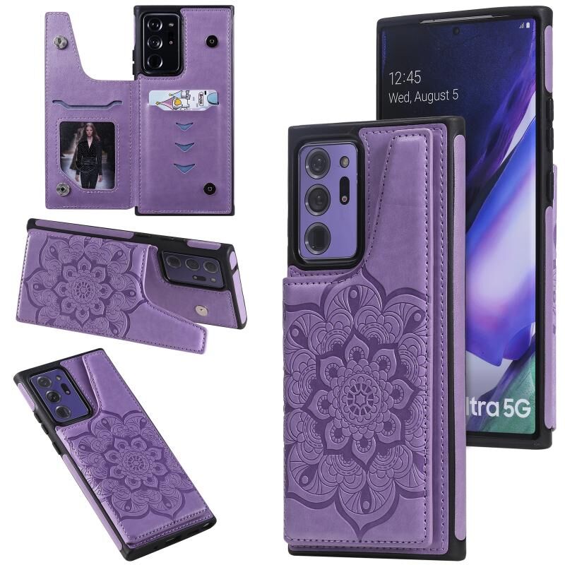 Για Samsung Galaxy Note 20 Ultra λουλούδι ανάγλυφο μοτίβο Shockproof προστατευτική θήκη με θήκη & υποδοχές για κάρτες & πλαίσιο φωτογραφιών (μωβ)