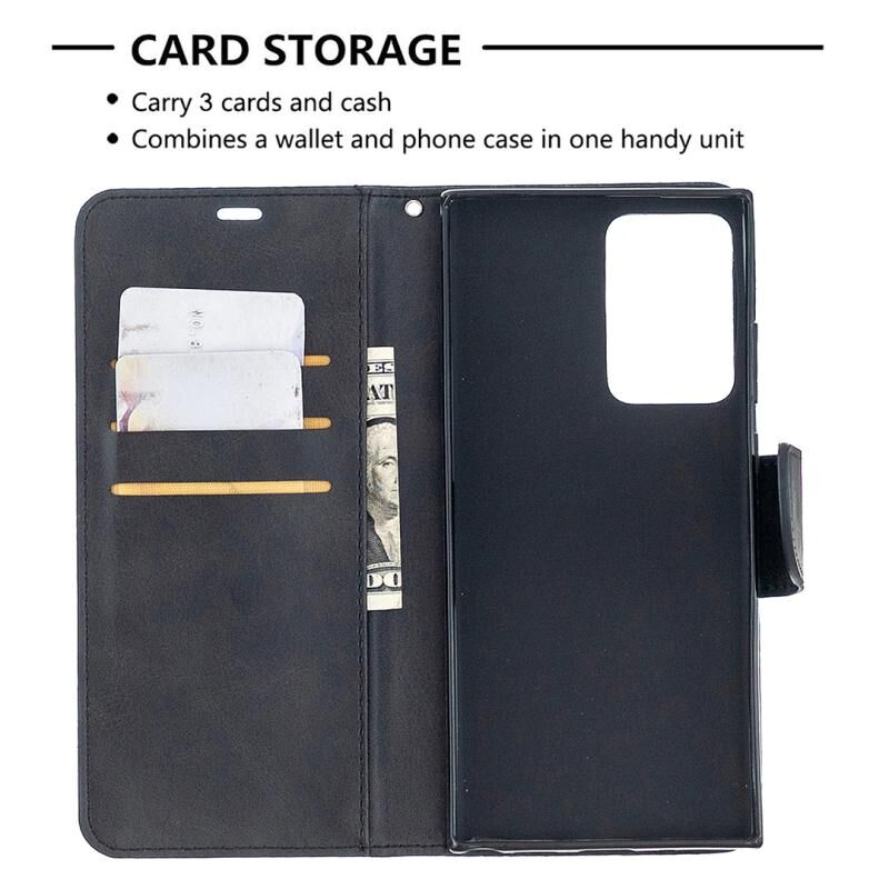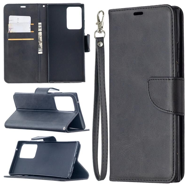 Για Samsung Galaxy Note 20 Ultra Retro Lambskin Texture Pure Color Horizontal Flip PU Leather Case, με θήκη & υποδοχές για κάρτες & πορτοφόλι & κορδόνι (Μαύρο)