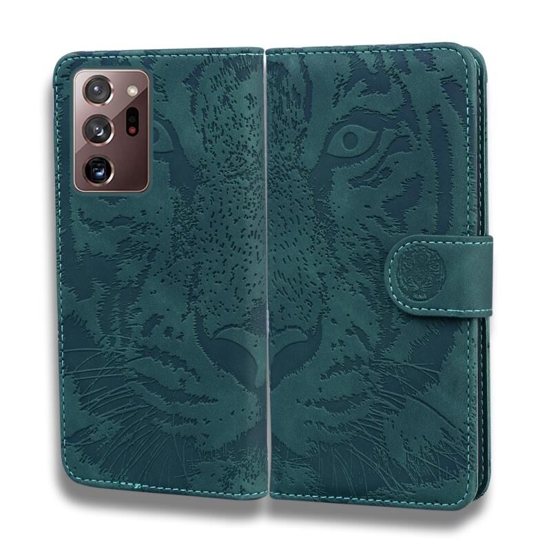 Θήκη δέρματος οριζόντιας αναδίπλωσης με ανάγλυφο σχέδιο τίγρης για Samsung Galaxy Note 20 Ultra με βάση & υποδοχές καρτών & πορτοφόλι (Καφέ)