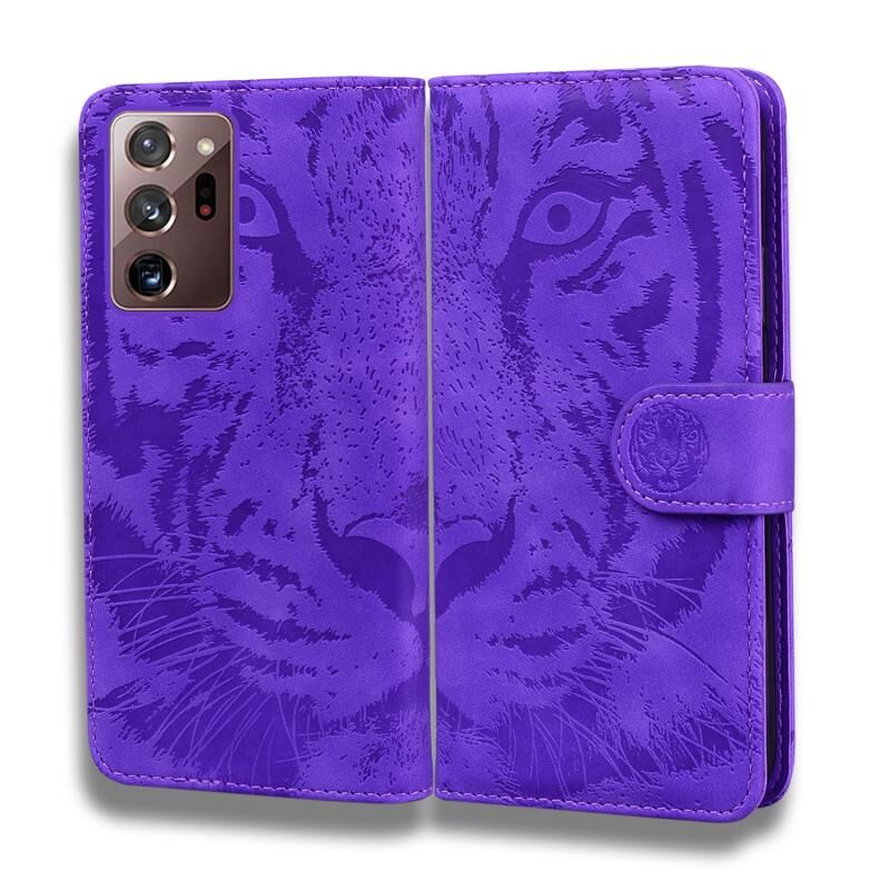 Θήκη δέρματος οριζόντιας αναδίπλωσης με ανάγλυφο σχέδιο τίγρης για Samsung Galaxy Note 20 Ultra με βάση & υποδοχές καρτών & πορτοφόλι (Καφέ)