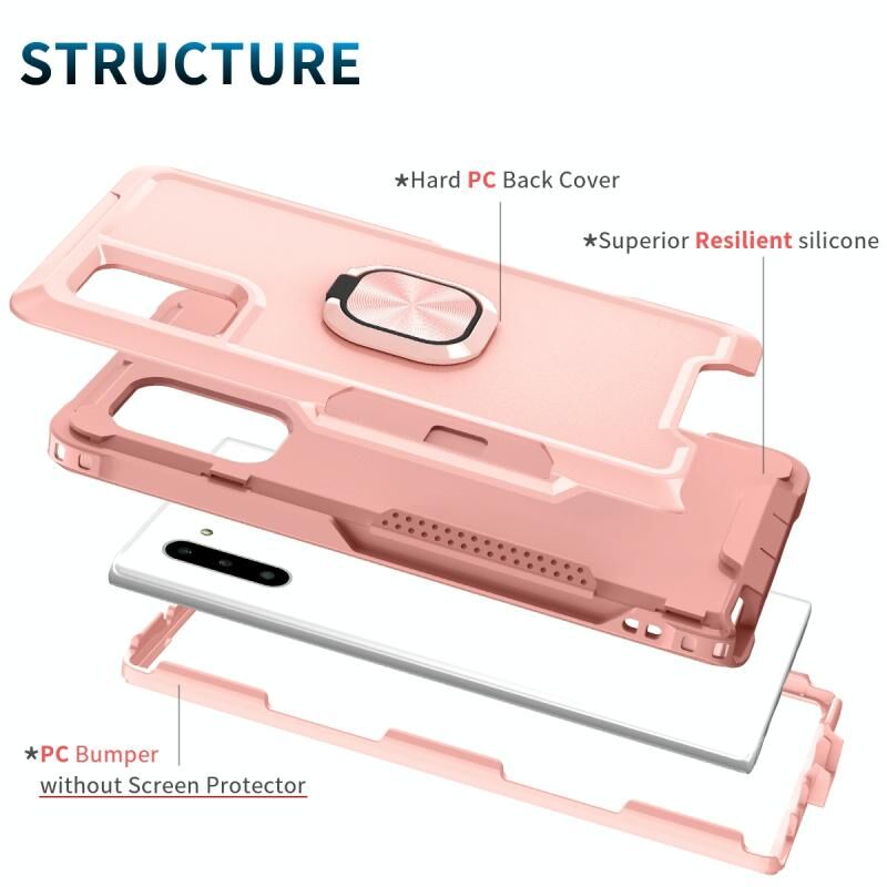 Για Samsung Galaxy Note10 3 σε 1 PC + TPU θήκη τηλεφώνου με θήκη δαχτυλιδιού (ρόζ)