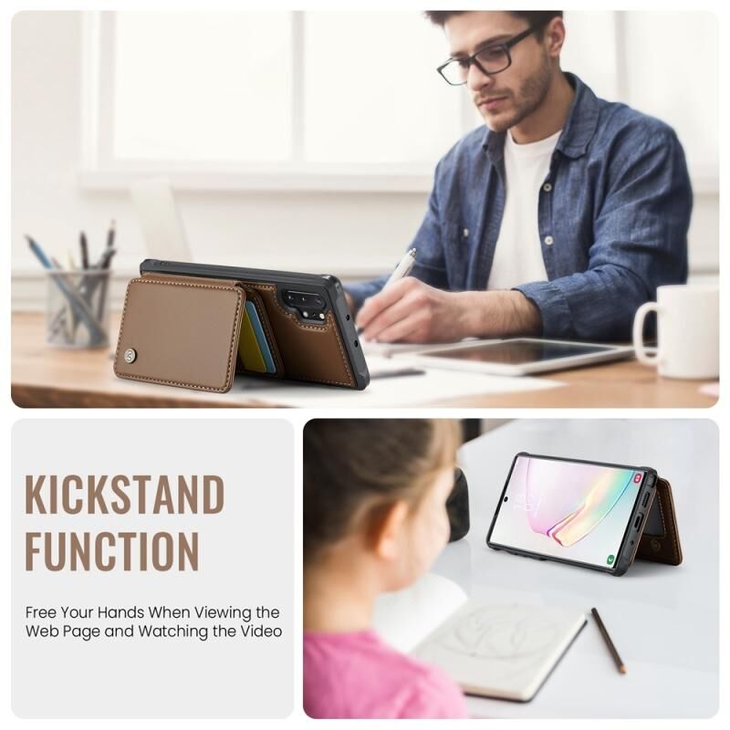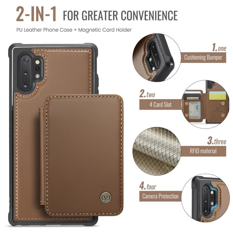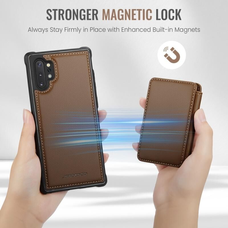 Θήκη τηλεφώνου JEEHOOD J05 για Samsung Galaxy Note10+ 5G, Δερμάτινη με Μαγνητικό Στυλ και Προστασία RFID (Μαύρο) (Καφέ)
