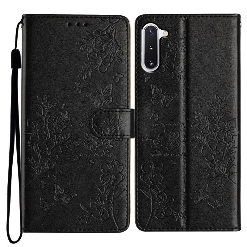Θήκη τηλεφώνου Samsung Galaxy Note10 Butterflies and Flowers από δέρμα (Χρυσό)