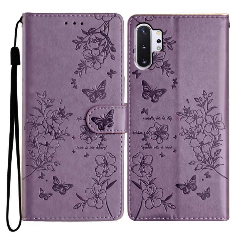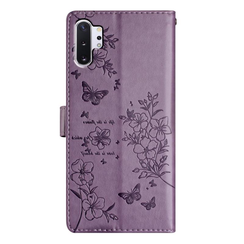 For Samsung Galaxy Note10+ Butterflies and Flowers Leather Phone Case(Purple)
