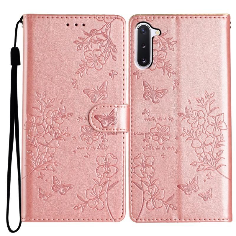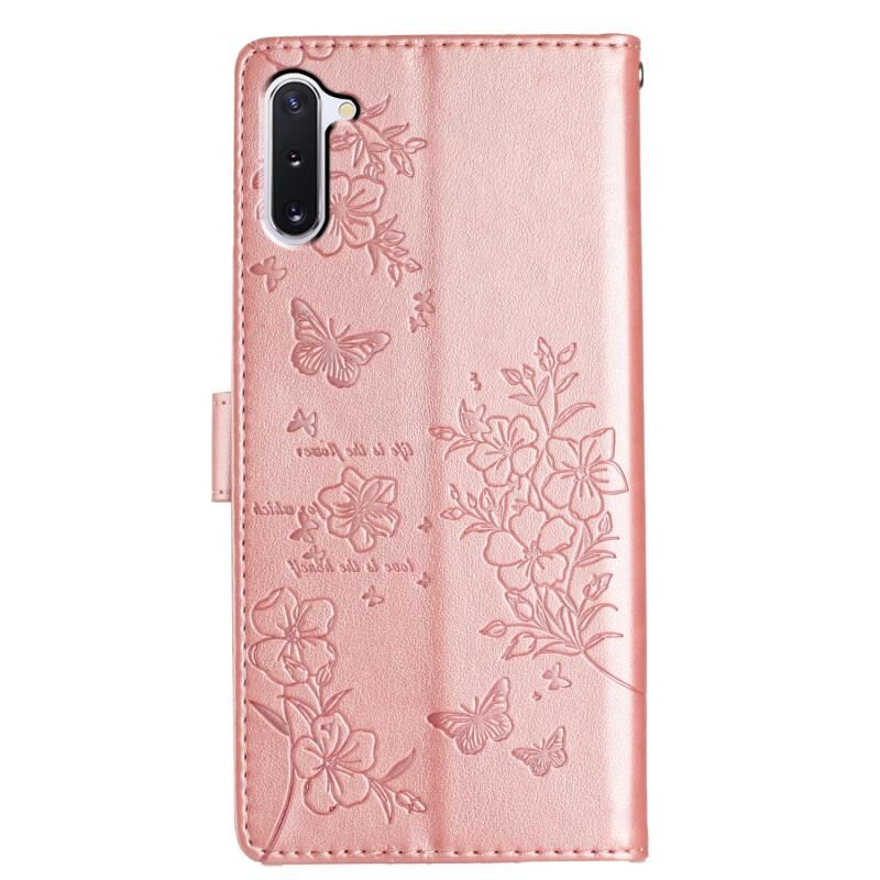 Θήκη τηλεφώνου Samsung Galaxy Note10 Butterflies and Flowers από δέρμα (Χρυσό)