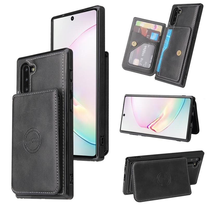 Για Samsung Galaxy Note10 μοσχάρι υφή μαγνητική κάρτα τσάντα PU υπόθεση τηλεφώνου (Μαύρο)