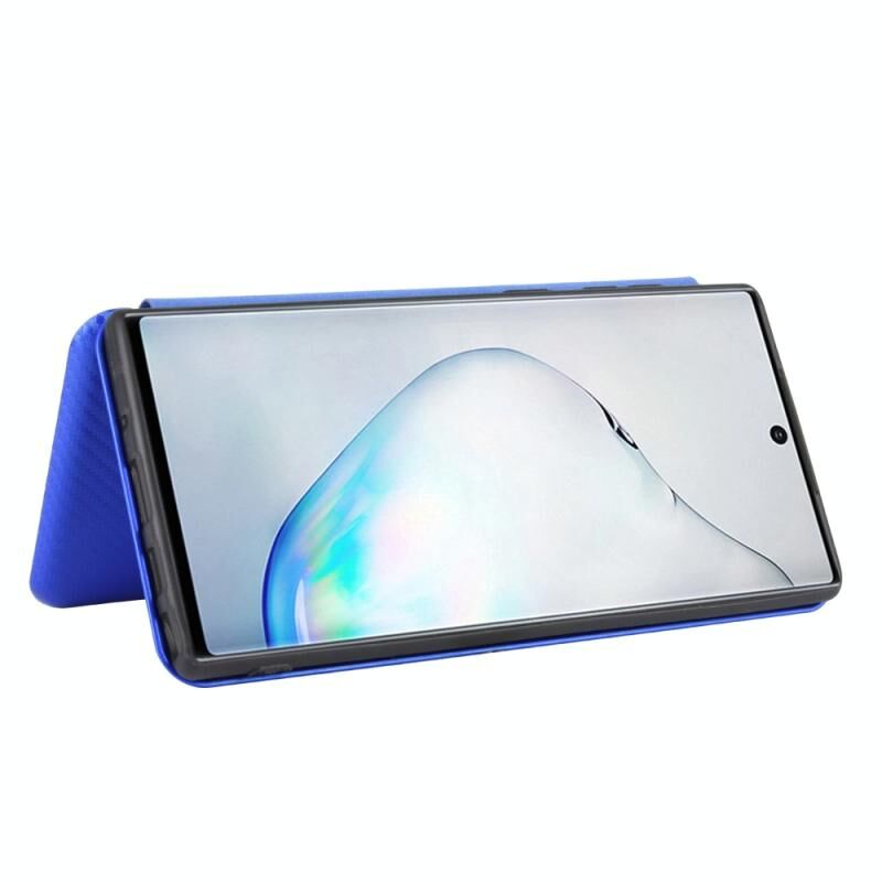 Για Samsung Galaxy Note10 Carbon Fiber υφή οριζόντια Flip TPU + PC + PU δέρμα υπόθεση με υποδοχή κάρτας (μπλε)