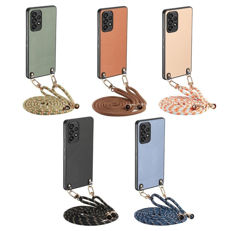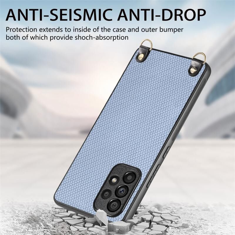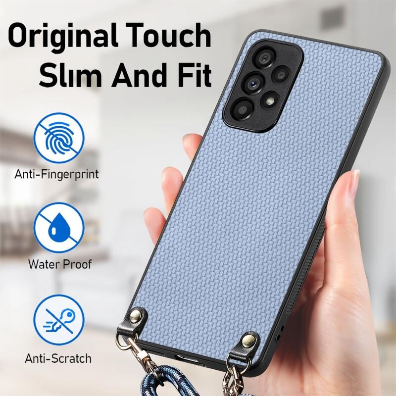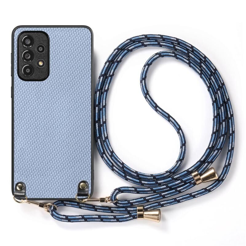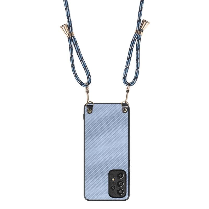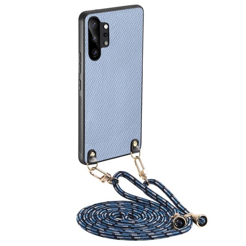 Για Samsung Galaxy Note10+ Carbon Fiber Texture δέρμα πίσω κάλυμμα θήκη τηλεφώνου με λουράκι σταυρού (Μπλε)