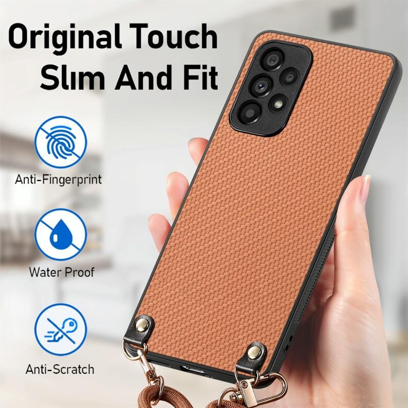 Για Samsung Galaxy Note10+ Carbon Fiber Texture δέρμα πίσω κάλυμμα θήκη τηλεφώνου με λουράκι σταυρού (καφέ)