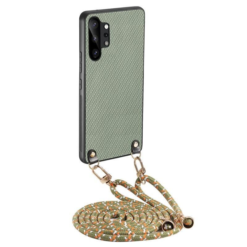 Για Samsung Galaxy Note10 Carbon Fiber Texture δέρμα πίσω κάλυμμα υπόθεση τηλεφώνου με λουράκι σταυρού (πράσινο)