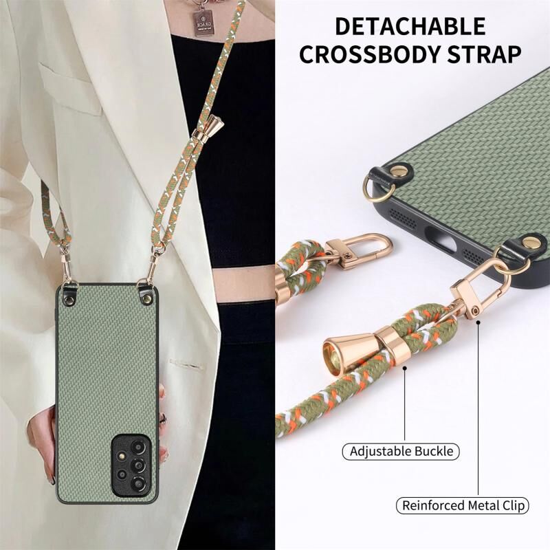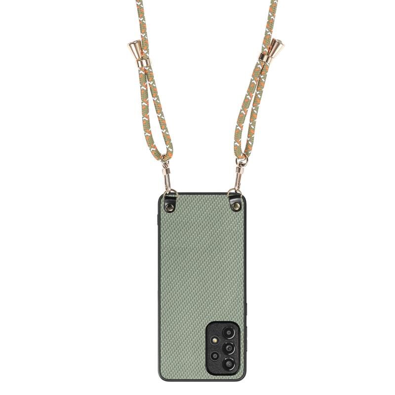 Για Samsung Galaxy Note10+ Carbon Fiber Texture δέρμα πίσω κάλυμμα θήκη τηλεφώνου με λουράκι σταυρού (πράσινο)