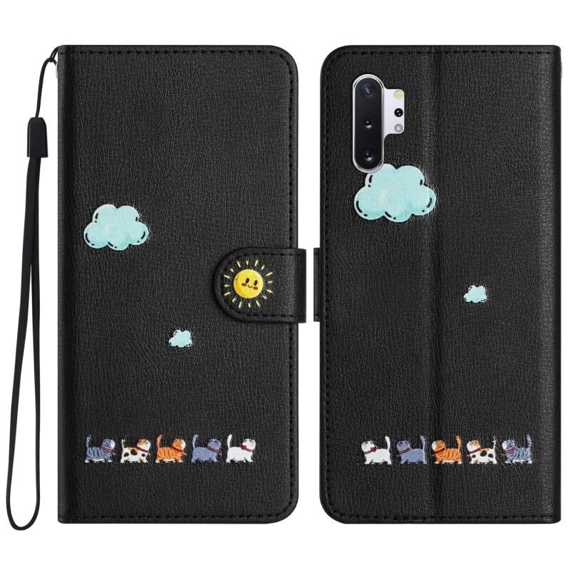 Θήκη τηλεφώνου Samsung Galaxy Note10+ από δέρμα με σχέδια χαριτωμένων γατών (Κόκκινο)