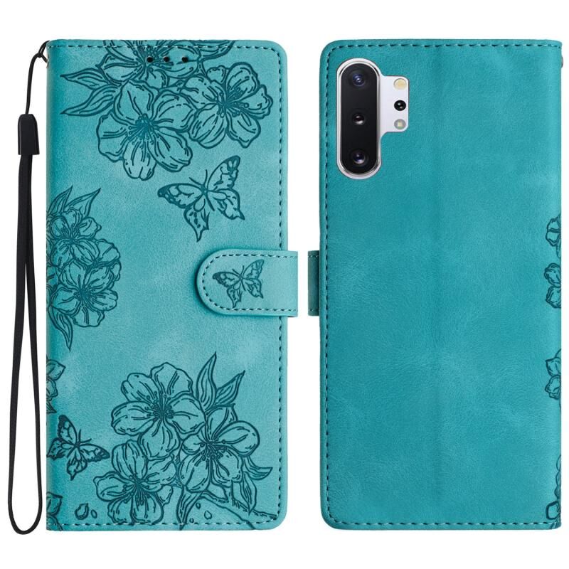 Θήκη τηλεφώνου Samsung Galaxy Note10+ Cherry Blossom Butterfly με ανάγλυφο PU υλικό αίσθησης δέρματος (Κόκκινο)