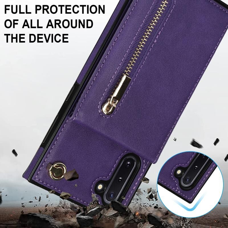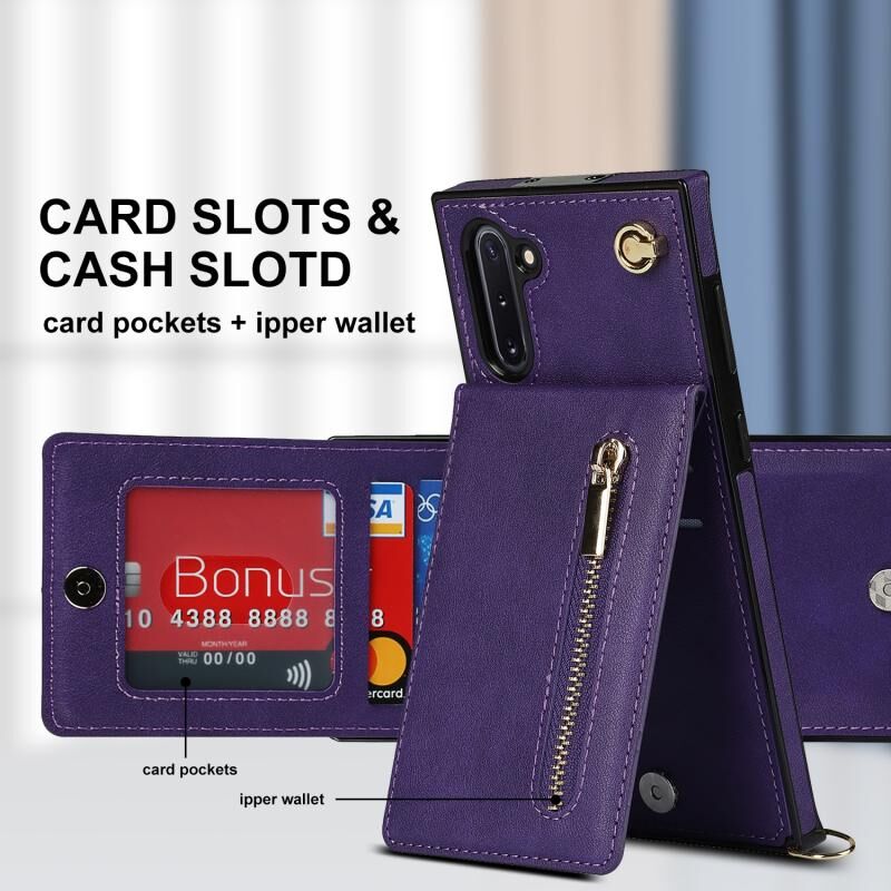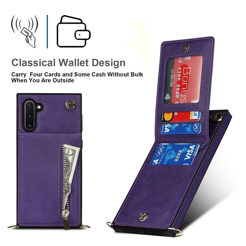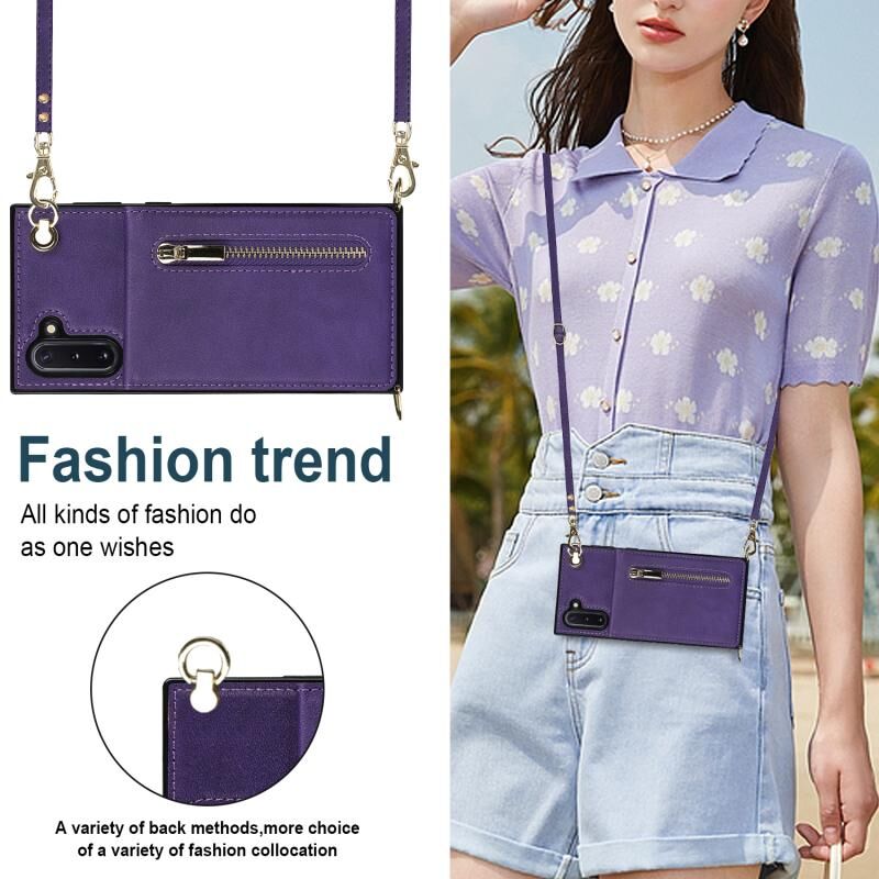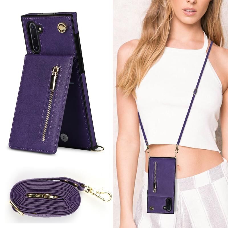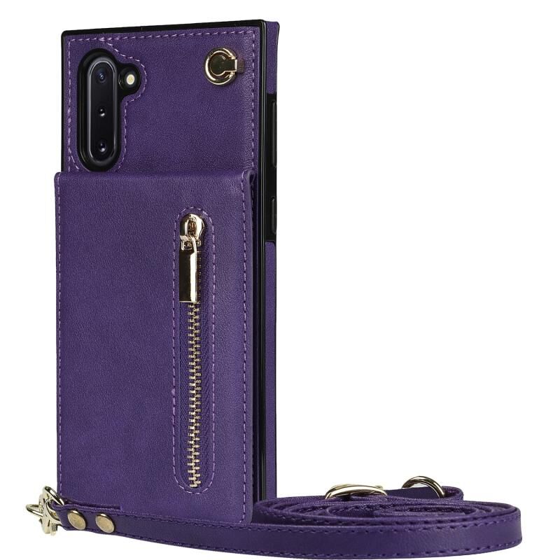 Για Samsung Galaxy Note10 Cross-body φερμουάρ τετράγωνο TPU + PU πίσω κάλυμμα θήκη με θήκη & υποδοχές για κάρτες & πορτοφόλι & λουράκι (Μωβ)