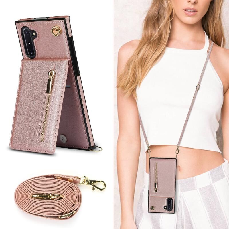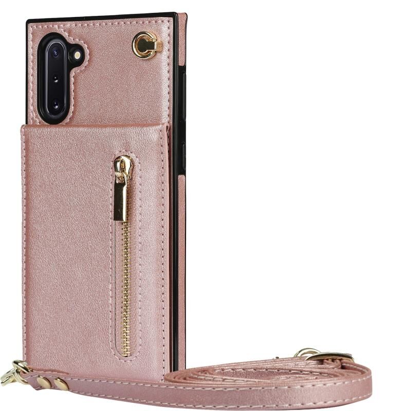 Για Samsung Galaxy Note10 Cross-body φερμουάρ τετράγωνο TPU + PU πίσω κάλυμμα θήκη με θήκη & υποδοχές για κάρτες & πορτοφόλι & λουράκι (Rose Gold)