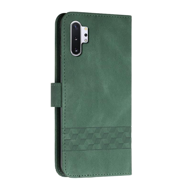 For Samsung Galaxy Note10+ Cubic Skin Feel Flip Leather Phone Case(Dark Green)