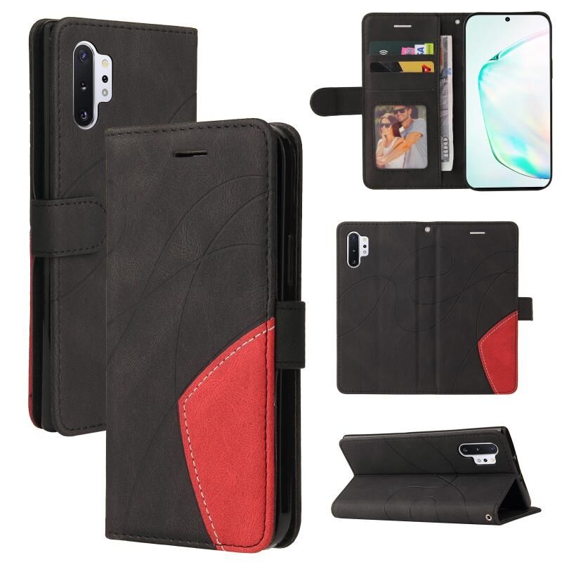 Για Samsung Galaxy Note10+ Διχρωμία Splicing οριζόντια Flip PU δέρμα θήκη με θήκη & υποδοχές για κάρτες & πορτοφόλι (Μαύρο)