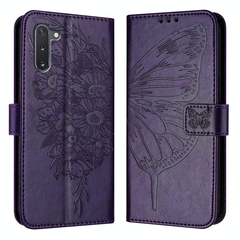 Για Samsung Galaxy Note10 ανάγλυφη πεταλούδα δερμάτινη θήκη τηλεφώνου (σκούρο μοβ)