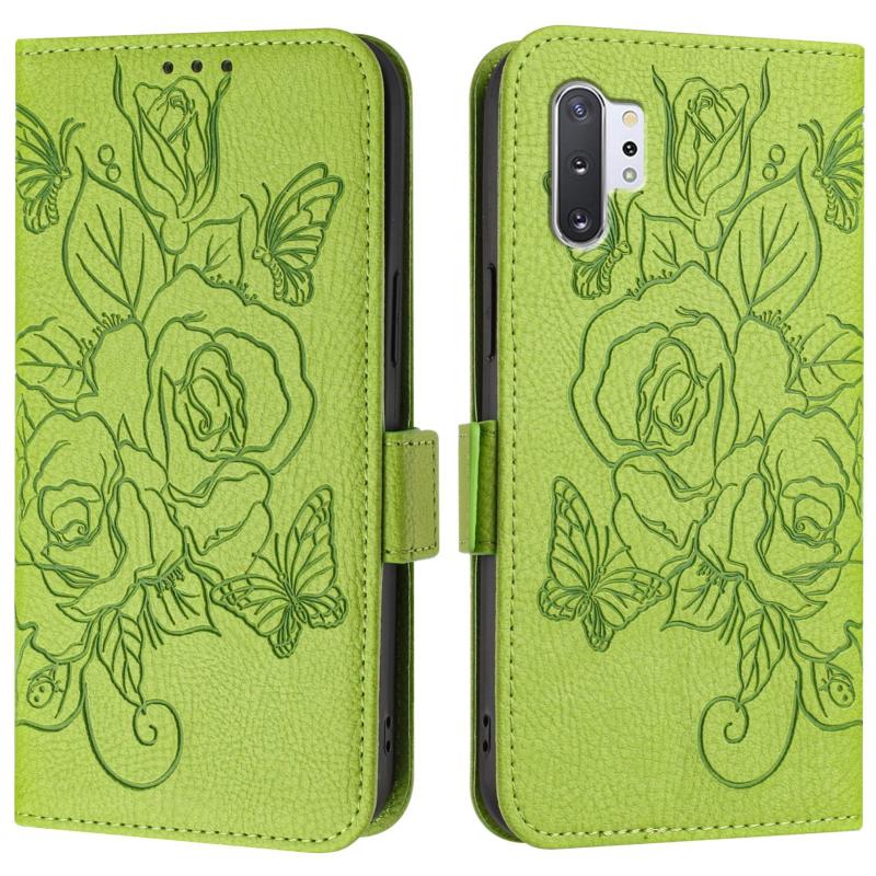 For Samsung Galaxy Note10+ Embossed Rose RFID Anti-theft Leather Phone Case(Green)