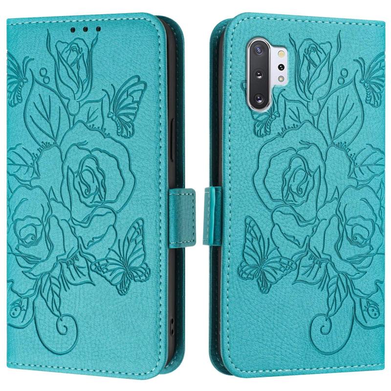 For Samsung Galaxy Note10+ Embossed Rose RFID Anti-theft Leather Phone Case(Light Blue)