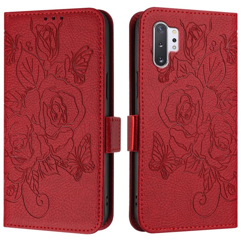 For Samsung Galaxy Note10+ Embossed Rose RFID Anti-theft Leather Phone Case(Red)