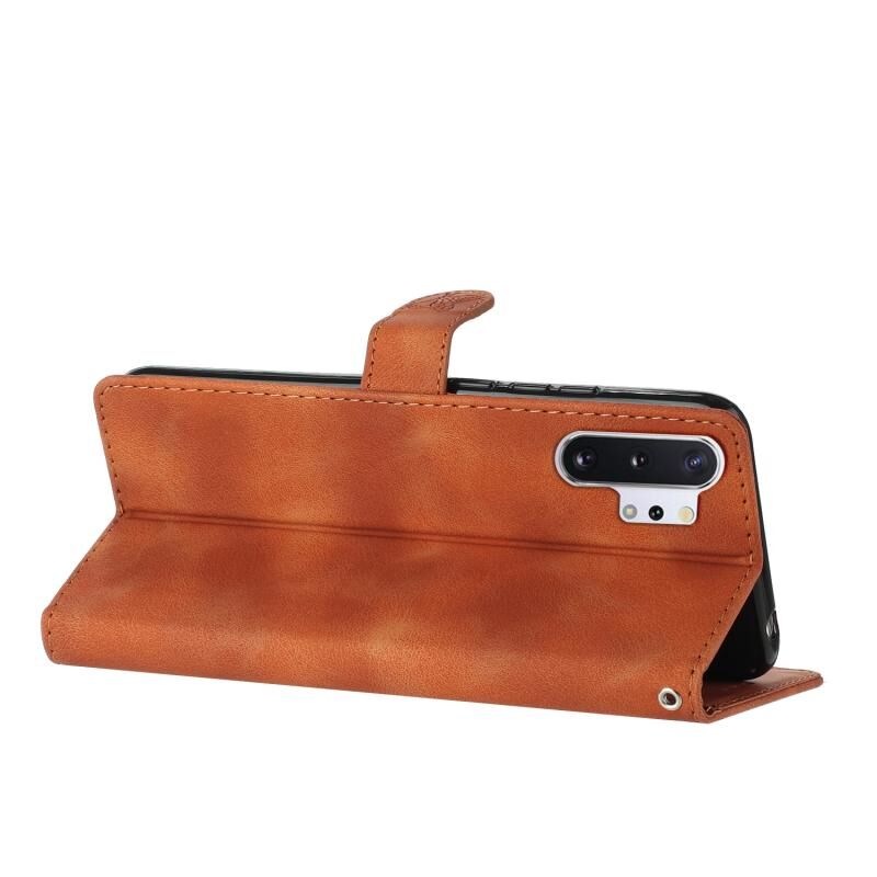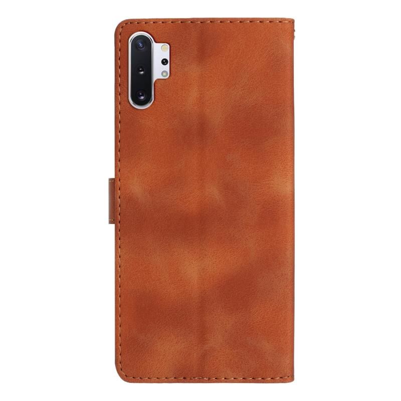 Για Samsung Galaxy Note10+ λουλούδι πεταλούδα ανάγλυφο μοτίβο δερμάτινη θήκη τηλεφώνου (καφέ)
