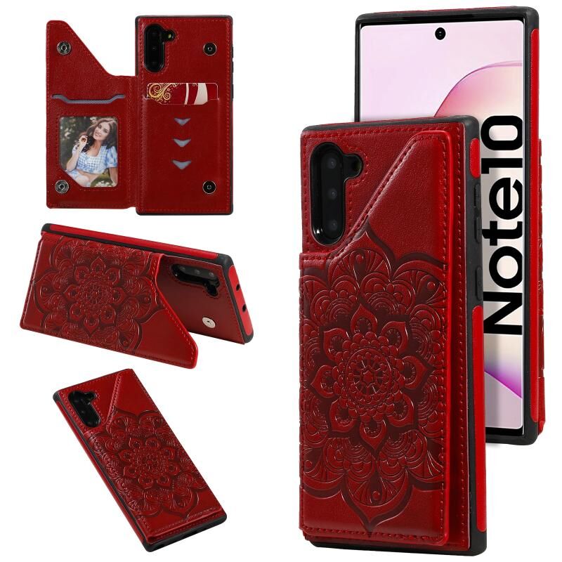Για Samsung Galaxy Note10 λουλούδι ανάγλυφο μοτίβο Shockproof προστατευτική θήκη με θήκη & υποδοχές για κάρτες & πλαίσιο φωτογραφιών (κόκκινο)