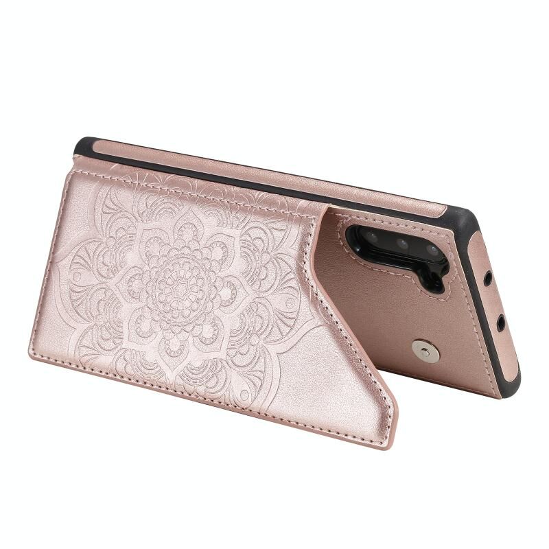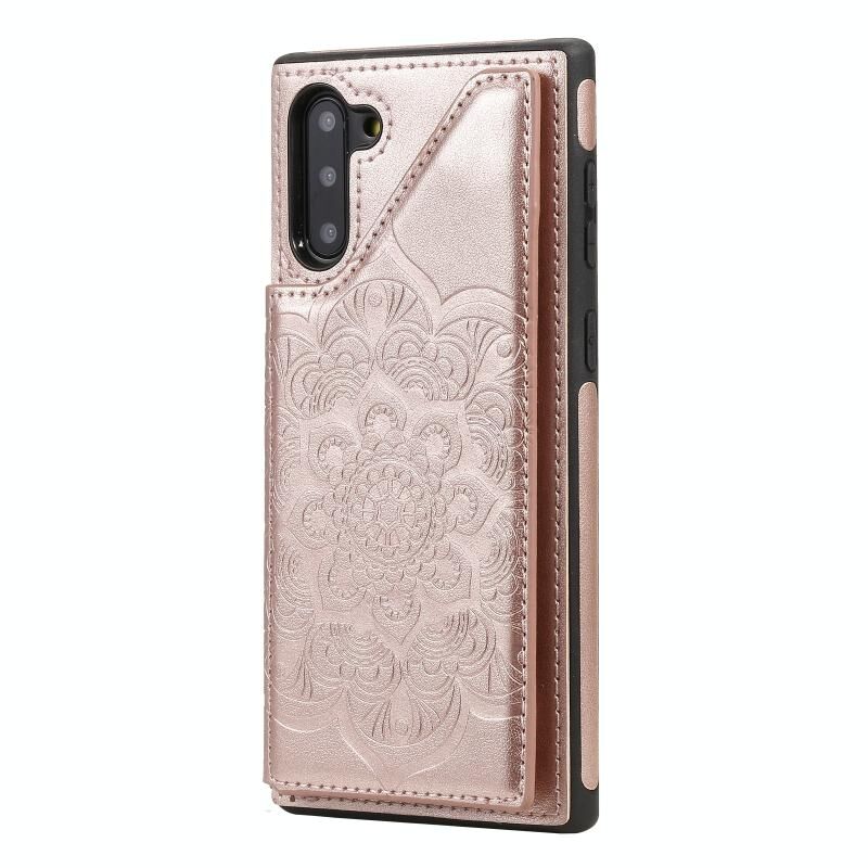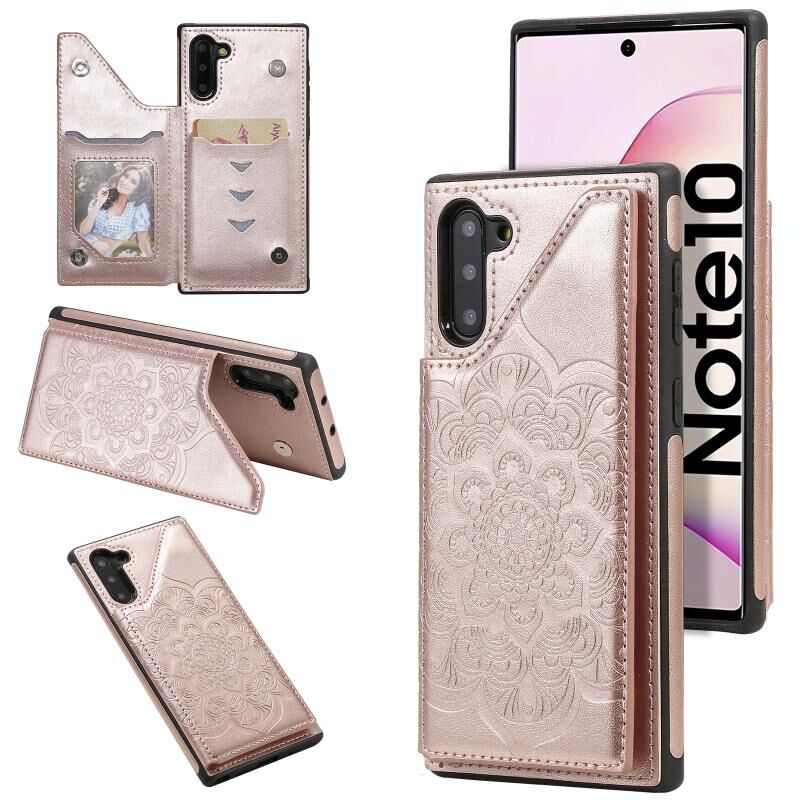 Για Samsung Galaxy Note10 λουλούδι ανάγλυφο μοτίβο Shockproof προστατευτική θήκη με θήκη & υποδοχές για κάρτες & πλαίσιο φωτογραφιών (Rose Gold)
