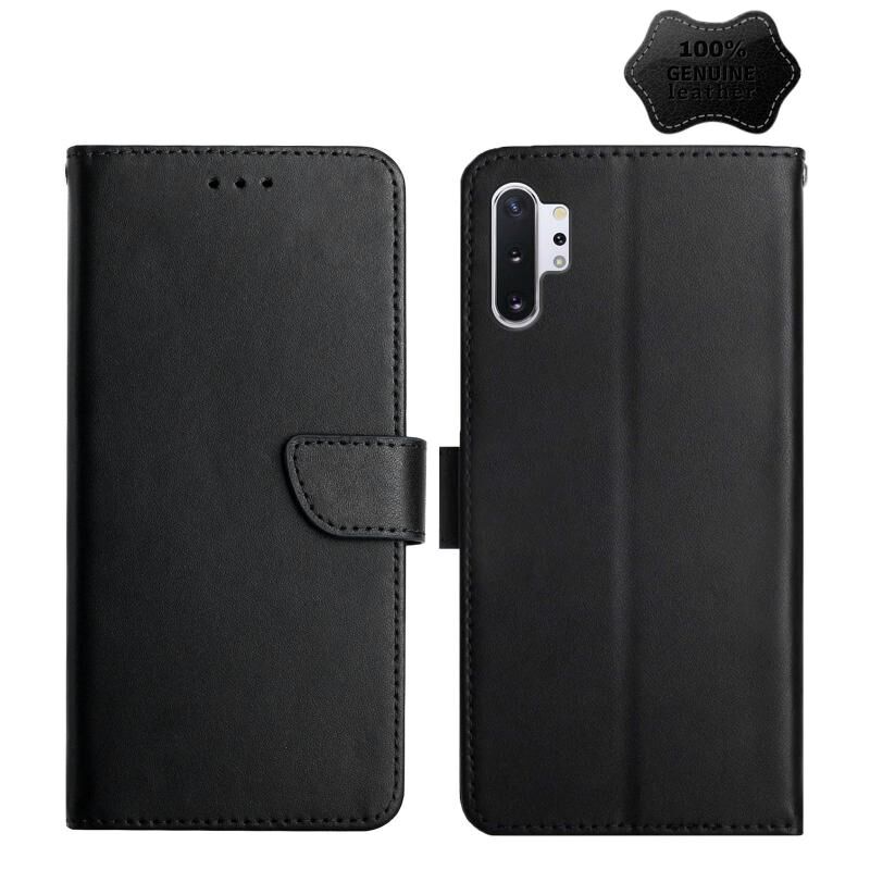 Θήκη τηλεφώνου Samsung Galaxy Note10+ από γνήσιο δέρμα, οριζόντια, αντι-δακτυλικά αποτυπώματα (Μαύρο)