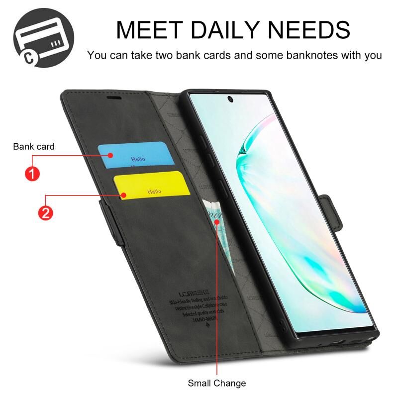 Για Samsung Galaxy Note10 LC.IMEEK Ισχυρός Μαγνητισμός Εξαιρετικά Λεπτή Οριζόντια Αντικραδασμική Ματ Θήκη TPU + Δερμάτινη PU με Στήριξη & Θήκες Καρτών & Πορτοφόλι (Μαύρο) (LC.IMEEKE)