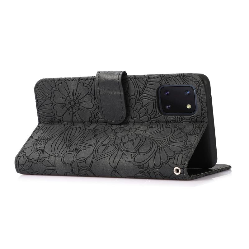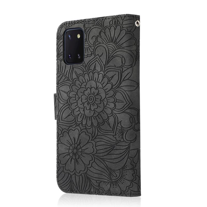 Για Samsung Galaxy Note10 Lite / A81 Skin Feel ανάγλυφο ηλιοτρόπιο οριζόντια Flip δερμάτινη θήκη με θήκη & υποδοχές για κάρτες & πορτοφόλι & κορδόνι (Μαύρο)