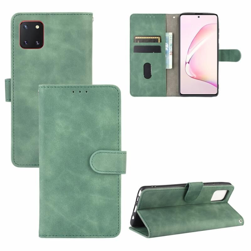 Θήκη για Samsung Galaxy Note10 Lite /A81, μονόχρωμη, με αίσθηση δέρματος, μαγνητικό κούμπωμα, οριζόντια, με υφή μοσχαριού, από δερματίνη PU, με βάση & θήκες για κάρτες & πορτοφόλι (πράσινο)