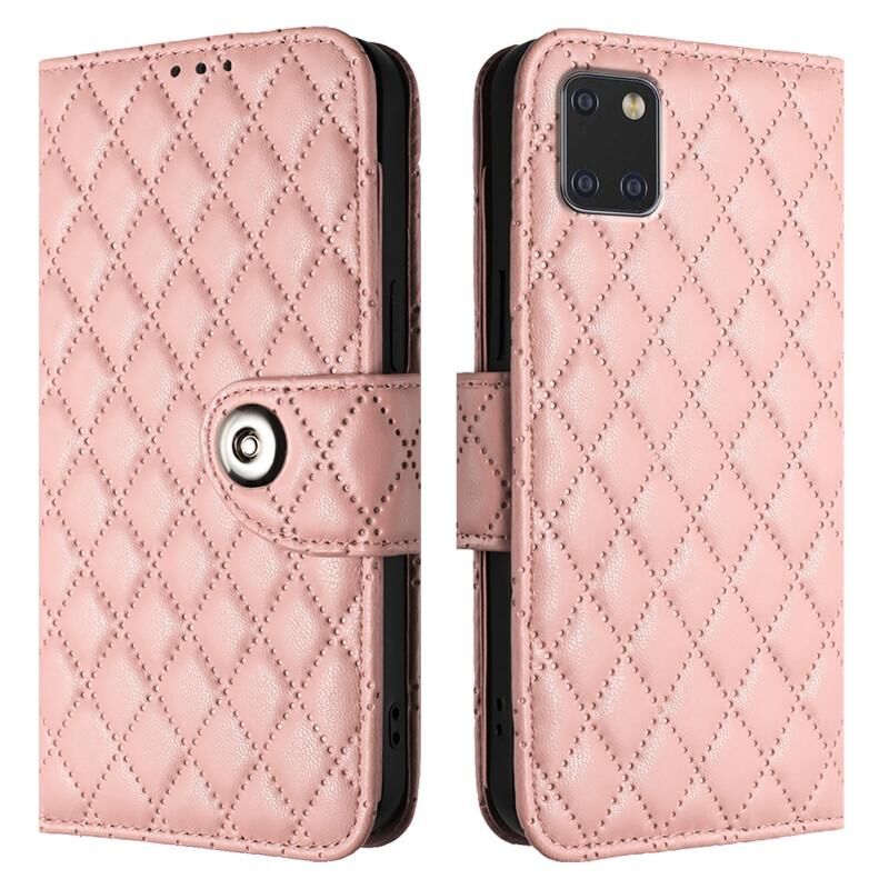 Για Samsung Galaxy Note10 Lite Rhombic υφή Flip δερμάτινη θήκη τηλεφώνου με κορδόνι (ροζ κοραλλί)